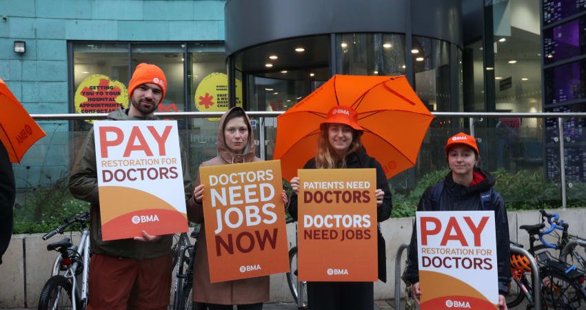 Resident doctors braved Storm Claudia today to form picket lines outside hospitals as they began 5 days of strike action.